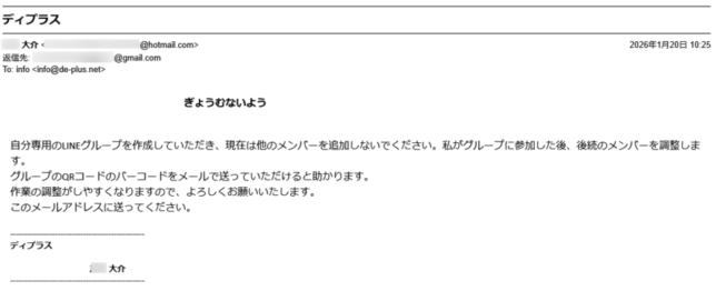- 業務上の都合を理由に、LINEグループの作成を依頼する